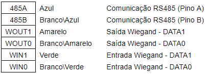 Estos conectores posibilitan que el controlador de acceso se comunique con otros dispositivos, tales como lectores de tarjetas, controladoras e incluso otros IDAccess. Para conectar lectores de tarjetas, utilice las entradas WIN1 y WIN0. En cambio, para conectar el dispositivo a una controladora externa utilice las salidas WOUT1 y WOUT0.