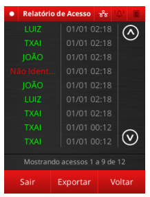 Os usuários exibidos em verde são os que tiveram acesso autorizado. Os exibidos em vermelhos são os que tiveram o acesso negado.